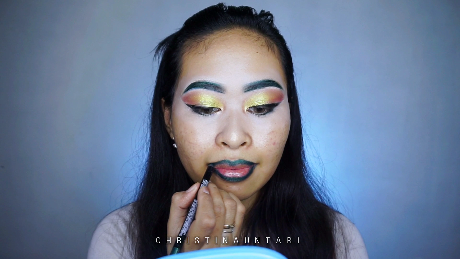 Selain menggunakan lipstik hijau yang "aneh, nyeleneh" khas aku aku juga gabungin dengan eyeliner warna serupa untuk membingkai alis. Kenapa? Karena selain adanya lip cream yang "nyeleneh" ya cuma ijo metalik aku juga mau pakai warna ini supaya sisi kolerisku sedikit "lunak". Mungkin lucu sih, tapi memang untuk tipe orang koleris macam aku yang gampang naik darah butuh banget nih yang namanya pengalihan diri, salah satunya dengan terapi warna hijau yang aku lakuin beberapa minggu belakangan ini. Caranya, murah banget kok. Tiap pagi atau sore hari coba jalan kecil di sekitar rumah sambil lihatin pohon yang ijo (kebetulan rumah yang disini teduh banget, banyak pohon). Banyakin barang-barang warna hijau di sekitar kamar, dan juga coba banget buat tiap mau marah tarik napas sembari lihat yang seger-seger... bukannya mau ngajarin sih ya, tapi buat aku cara ini sumpah murah banget dan emang cocok buat relaksasi apalagi yang pikirannya semrawut kaya aku ini 😂.
